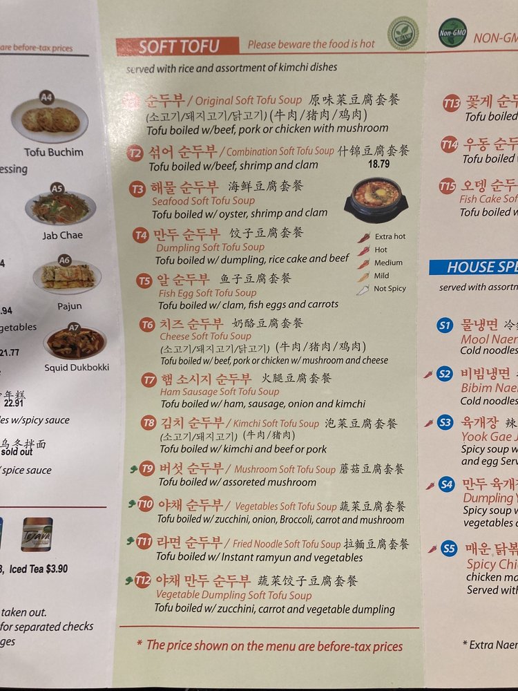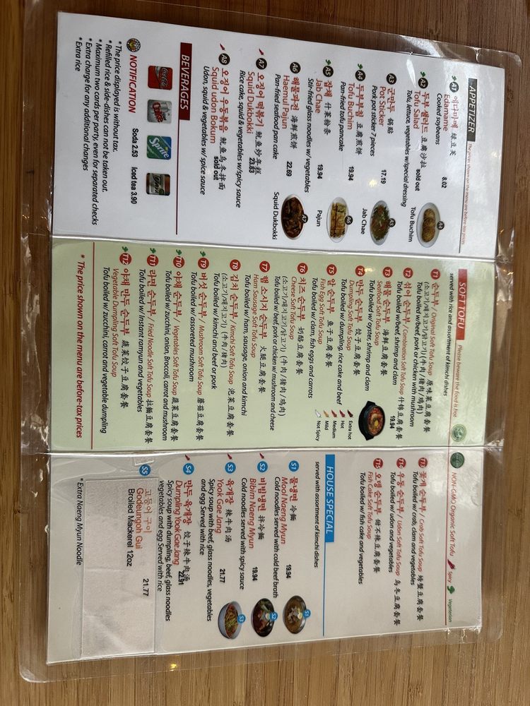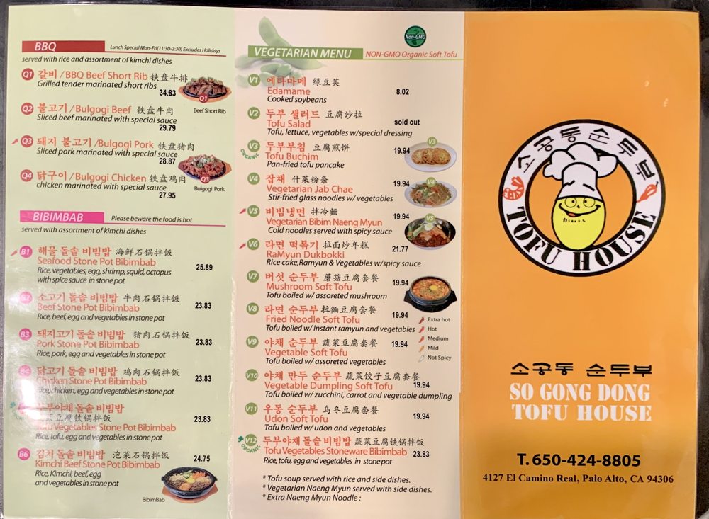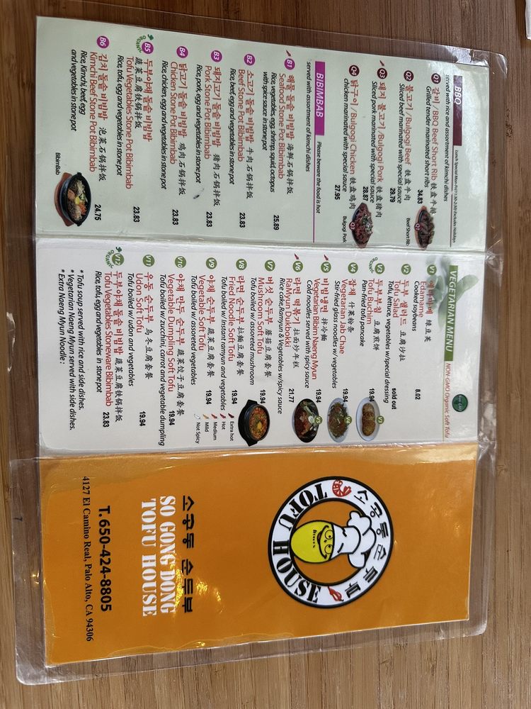 Introducing the menu at So Gong Dong Tofu House, a renowned Korean restaurant in Palo Alto. With a focus on traditional Korean dishes, this spot offers a wide range of options for all types of preferences. From seafood pancakes to cold noodles and spicy tofu soups, customers rave about the flavorful and authentic dishes served here. The seafood pancake is a standout, crispy yet fluffy, loaded with various seafood items. The kimchee soondoobu with beef spicy and cheese soft tofu soup with beef are must-try items that consistently receive high praise. Customers also appreciate the variety of banchan (side dishes) offered, including the unique purple rice. The welcoming atmosphere, attentive service, and delicious food make So Gong Dong Tofu House a top choice for Korean cuisine lovers in the area.